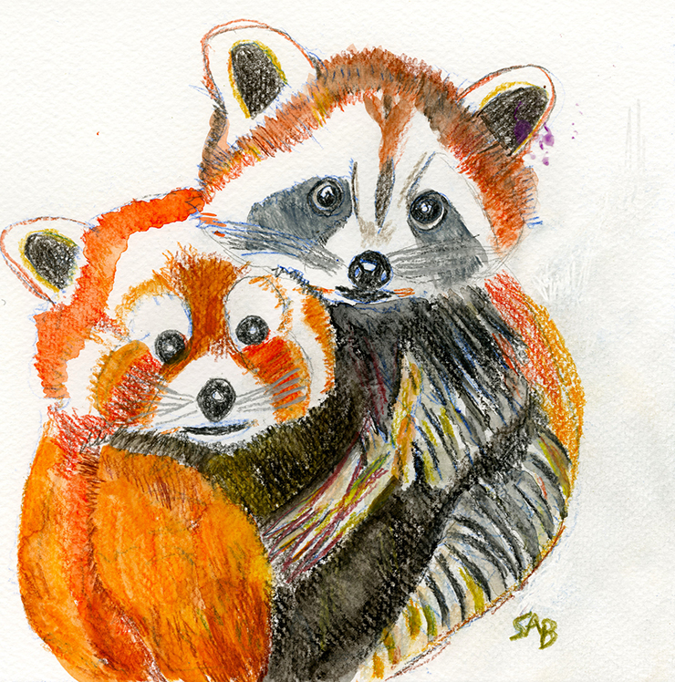 A racoon and a red panda–Friends